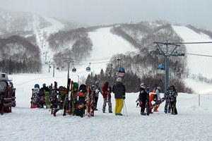 5時間券を買って、ゴンドラに乗り込む。昔はゴンドラは二本あったが、今は1本は動かしてないようだ。山頂はやっぱり雪が激しい。