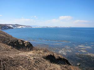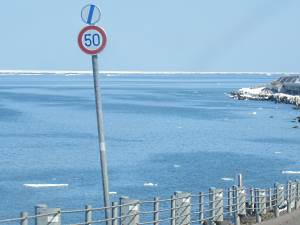 | この日帰らなければならなかったが、飛行機まで時間あったので、ウトロまで足を延ばすことにした。知床半島を北上していると、斜里を過ぎた頃、水平線に流氷が見えてきた。流氷見るのは25年ぶり。途中、カメラマンがちらほらいたが、どうやらオジロワシの写真撮ってるようだった。ワシは肉眼では見えたが、写真には撮れず。さすがにコンデジじゃきつい。望遠レンズがないから。 |
