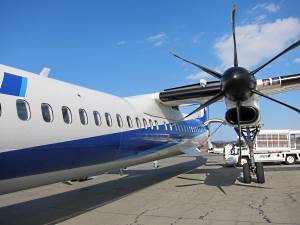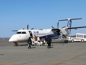 女満別ー新千歳は、プロペラ機だ。カナダのボンバルディア。 |