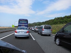 鳴門から四国に入り、高松自動車道から徳島自動車に乗り換えた途端、まったく動かず大渋滞に巻き込まれた。延々と渋滞でひどい目にあったが、原因は多重事故だった。車10台以上次々と突っ込んだようだった。ここを乗り切ると絶好調だったが、結局高知まで16時間。ちょっとぐったりだ。
