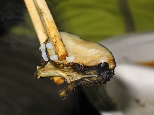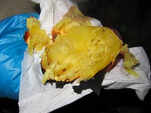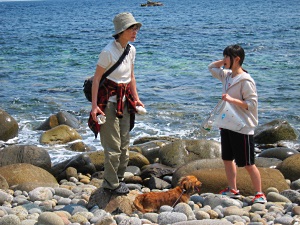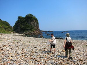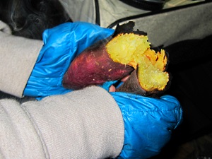 夜はキャンプ場に戻って、昼間買い入れた食材で、炭火焼です。ナガリ(トコブシ:小さなアワビの類)がうまい。アユは河原の石を集めて、さつまいもを埋め込んで、焼きいもを。夜は結構寒くなるので、これも最高です。 |