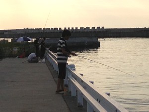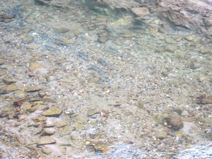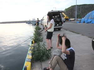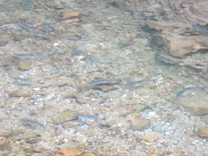 昼すぎから4人でがんばったが、魚の気配がない。たまに数匹の群れが通り過ぎるだけだ。