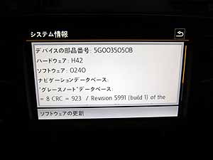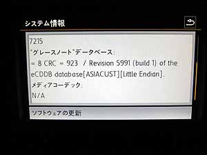 システム情報を確認すると、ナビゲーションデータベースの欄が空白になっていること判明。地図は更新されてるっぽいのに、、