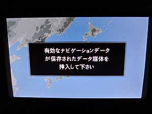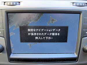 | 夕刻、車を再始動すると、今度は最初からエラー("有効なナビゲーションデータが、、、媒体を挿入してください"というやつ)でカードを読み込めない。ナビも立ち上がらず地図も表示できない。システム情報ではナビゲーションデータベースは"空欄"となている。 |