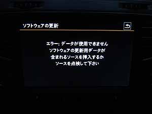 前日に解凍作業を少し変更し、SDカードに直接解凍してみた。このカードで、運転しながら数回更新作業実施。一回目は1%でエラー。二回目以降は、"データが使用できません"のエラー発生し、更新作業スタートまで行かない。 |