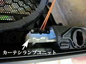 ←カーテシランプユニットの奥側が内貼り側にぶつかってしまうのと、ユニットを固定する爪も微妙にはまらない。