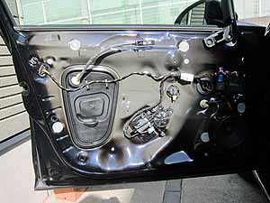 つながっているのは、パワーウィンドーのSW用コネクタと、ドア開閉のワイヤのみです。こちらは簡単に取れるはず。