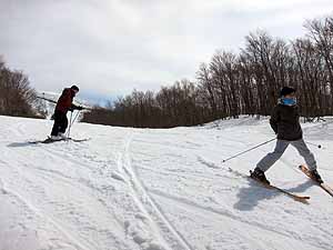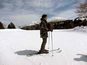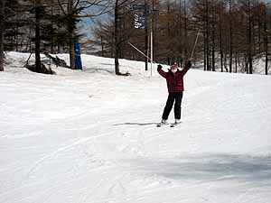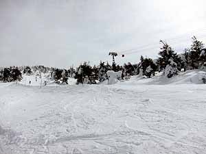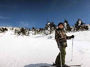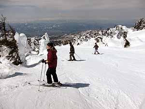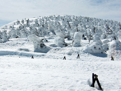 天気も良く、雪も思いのほか沢山残ってたので、快適なスキーとなりました。名物の樹氷も、まだかろうじて残ってて、、融けかかってましたが。