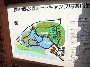 すぐとなりに"赤穂海浜公園オートキャンプ場"なる超近代的なオートキャンプ場があったので見学。相当にきれいで快適そうだが、お値段もそれなり。直接海に面していないのは残念かな? |