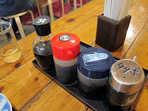 ←浜ちゃんでは、この4種類のたれを使い分けてる。どれも納得の味がする。