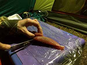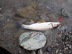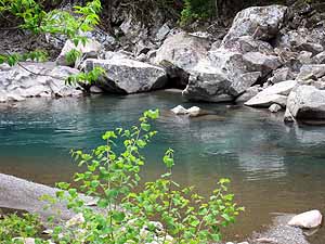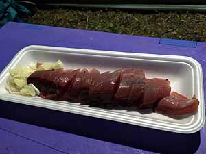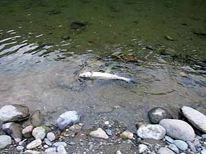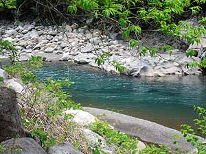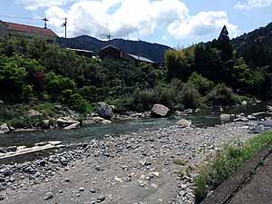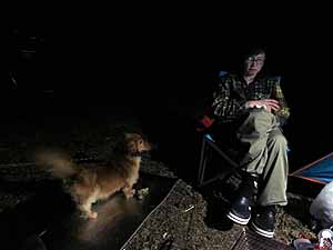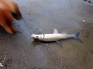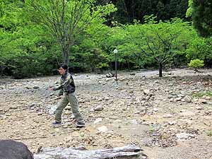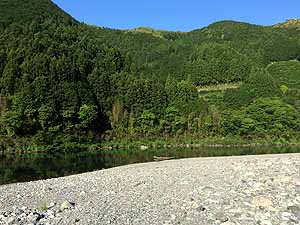 夕刻は仁淀川のキャンプ場の前でルアーフィッシング。一応、サツキマスが狙い。数投目でいきなりヒット! まさかと思ったが、やっぱりまさかで正体はウグイ。結構なサイズ。くうが面白がって口にくわえちゃったり、、、。でも元気に川へ戻って行きました。
