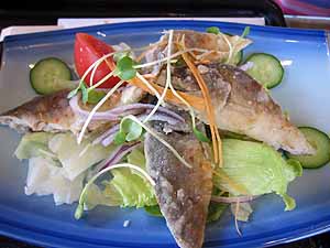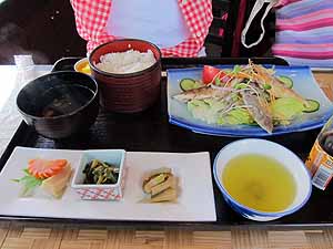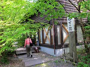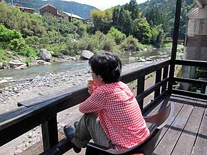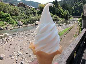 テラスでユーズ缶の東部缶飲みながらゆずソフトを食べてたら、テラス下の川にある堰堤の魚道でアメゴがジャンプするのが見える。ここにタカやカラスが現われ、ジャンプするアメゴをキャッチしているようだ。