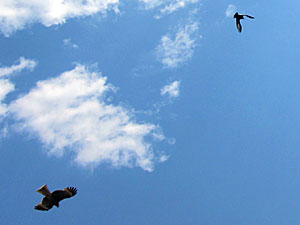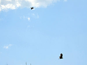 しまいには、アメゴをキャッチしたタカをカラスが空中攻撃して、アメゴを横取りしようとしていた。