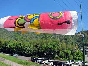 見たことある仁淀川の”紙のこいのぼり”を再訪。すごい人出だ。帰りに吾北むささび温泉でお風呂。