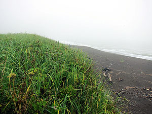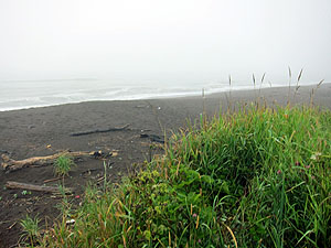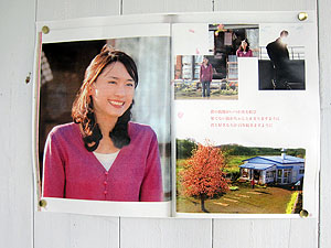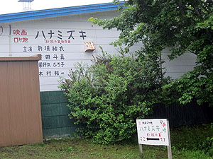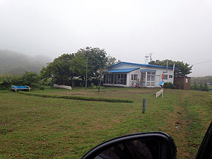 朝から天気が怪しく小雨or濃霧。OkBig氏のお勧めにより尺別海岸を探す。尺別駅から海へ向かう道路を進むと、映画のロケ地の看板。"ハナミズキ"の紗枝の家だ。
