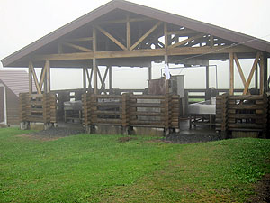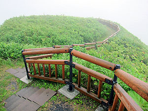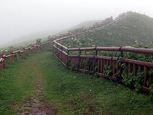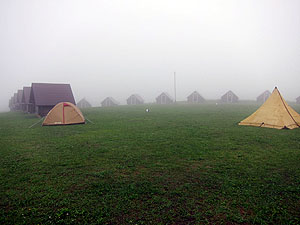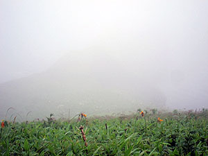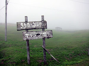 やどのすぐ近く(車で数分)に、琵琶瀬展望台がある。夕食前の一瞬で霧が晴れたので、即行ってみた。が、着いた途端に霧。ぎりぎり湿原が見えたが。