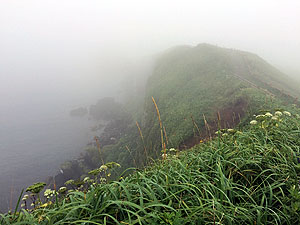 霧多布岬もアゼチの岬も、霧で何も見えず。さすが、霧多布だ。