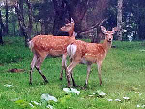 今回のツアーで一泊だけ宿を予約してました。浜中町の"樺のん"さん。ログハウスでできた3部屋のみの宿。裏庭にはエゾシカが遊びに来ています。