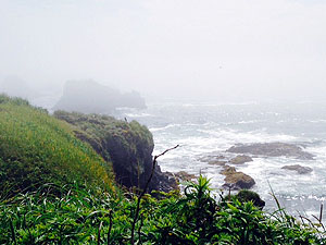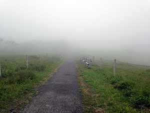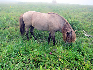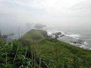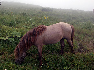 厚岸から浜中へ戻る途中に、あやめヶ原をみつけお散歩。霧がひどくて寒かったが、この時期何もないのかも。放牧の馬のみ。このあと、二度目の"ゆうゆ"へ。