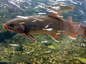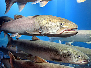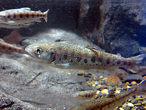 アメマス、イトウ、ヤマメ。いつのまにか、イトウの展示は普通になりましたね。
