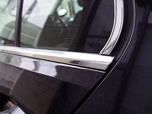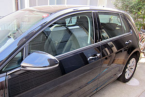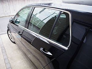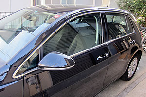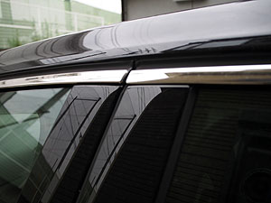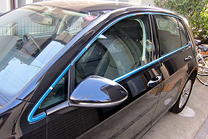 取り付けは、ウィンドー周辺のゴムのところに両面テープで張り付けるだけ。難しいのは位置合わせ。結構、どうにでも付いちゃうので、なるべくキレイに貼るには慎重な位置決めをする必要ある。なんとなく頼りない両面テープが張られた状態で送られて来てるので、裏紙を剥がして張るだけの作業。あとは表面についてる青い保護テープを剥がすだけで終了です。