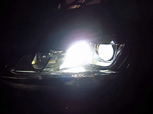 色はあきらかに白くなった。明るさは、もともとのハロゲンランプよりは暗いが、横を照らすには十分だと思える。