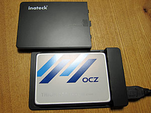 このモデルは、Core-i5-2520M (2.5GHz)/RAM: 4GB/500GBのHDDのタイプ。ちょっと古いノートPCはSSDに換装するとで快適になるらしいという噂を目にしたので、SSDをネットで物色。Amazonで240GBのモデルが1万円きってたので購入した。東芝グループのOCZというメーカーのスタンダートモデルでTLCのSSD。これであと3年くらい延命できないかなーという戦略。また、クローン作製と、換装後のHDDを使うために2.5ichドライブ用のSATAの外付けケースも同時に購入。