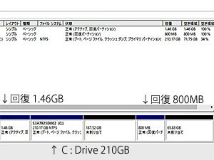 もとのHDDが500GBで、SSDが240GBなので、単純にそのままクローン作るのは賢明ではないと思い、"ディスクの管理"でメインのC Driveのパーティションを縮小し、210GBとした。割り当て未の領域が増えたがこれは気にしない。パーティションからのクローン作ると起動できないらしいので、かならずディスクtoディスクでクローン作る方があとで困らない模様。わかっててやる人にはそれなりの使いかたがあるんでしょうね。