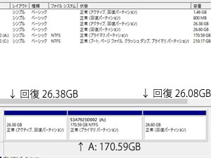 最初自動でクローン作ったら、回復パーティションが26GB×2で50GBもロス。これではメインパーティションが小さくなっちゃうので、やり直した。先頭にある回復パーティションは354MB、後ろの回復パーティションは、1.04GBまで小さく設定できた。あとSSDに最適化をチェック(これはアライメントずれ対策)。事前のSSDのフォーマットは必要ない。USB2でつないだせいか、結構時間がかかり、2時間30分ほどで終了。(USB3の端子もあることにあとで気がつきました)
