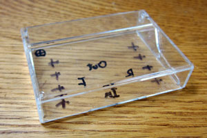 家にあるものを再利用ってことで、ケースには、miniDVのカセットケースを選択。LEDは、以前レガシィにつけていたT10-36mmFestonの5050チップ8連タイプを分解して使用することに決定。Feston球の電極部分は、半田ゴテをあてると簡単に外れます。