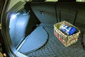 標準のラゲッジランプは右サイドについていて、Wバルブなこともあってきわめて暗い感じですよね? バルブだけをLEDに換えてとりあえず白く明るくはなったのもの、まだ不十分な照明状態でした。改善のために左サイドにもランプを追加することに、、、