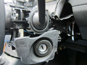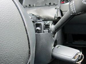 フットウエルライトとパラなので一緒に光ります。ドアオープンでmax輝度発光。夜間走行時にはほんのりとブルーに光ったままの状態になりますね。あとは外したカバーをもとに戻して完成。コラム上部カバー奥側の爪は手前側から差し込む軸のようになっているので要注意です。真上から押しても刺さりません。手前からスライドする感じで奥を先にはめてから、手前側を閉める感じですね。