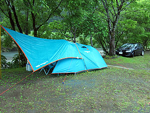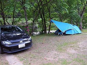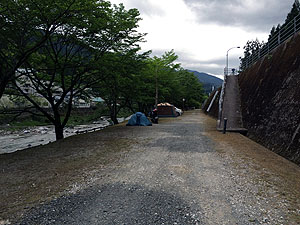 大雨が来るらしいので、一番慣れてる四万十の天満宮前キャンプ場へ。ここなら多少雨が来ても安心??午前中のうちにテントを設置して雨に備える。