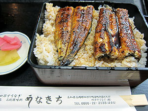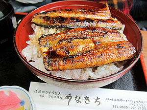 窪川のうなきちで昼食。ここはおすすめですね。天然もののウナギではありませんが、四万十川で採ったシラスウナギを四万十町で養殖したものが使われてるそうです。