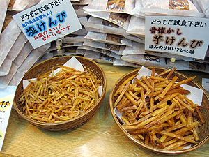 四万十町の水車亭という芋けんぴ屋さんです。お土産を。雨なので、買い物ということですね。