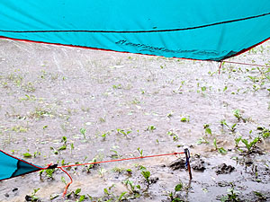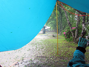 うーん。すごい雨と風でした。でも大きな被害はなく、大丈夫。周りのテントは飛ばされたりしてましたね。我が家は強力なペグを用意してたので、なんとか大丈夫でした。強風用の大きなペグはこんなとき心強い。