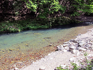 ![]() キャンプ場前の川 |