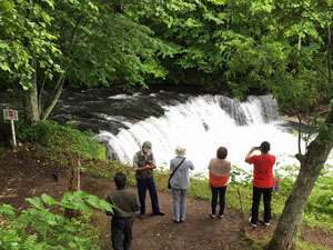 斜里川のさくらの滝をめざす |