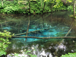 摩周湖からの伏流水でできている池らしい。ようく見るとオショロコマが数匹泳いでいる。水は青々と確かにきれい。観光客も多かった。
