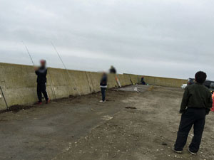尾岱沼漁港ではカラフト狙い3名 |