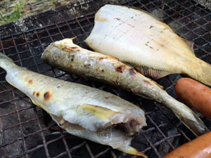 先日釣ったコマイがいい感じになってきてたので、朝から釣りもしないで炭火焼。最高!