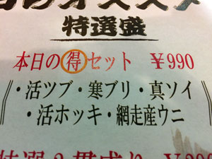 ![]() 網走の回転寿司で遅い昼食 990円 |