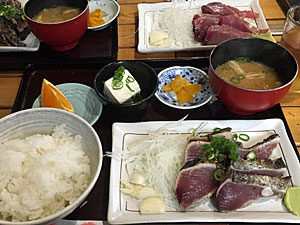 いつもの大正市場。お昼を大正市場で食べてから午後は雨。夕方に向けてかなり激しい降りかた。他のキャンパーはずいぶんいなくなっちゃいました。夜は久礼町のスーパーで買ったカツオを刺身で。