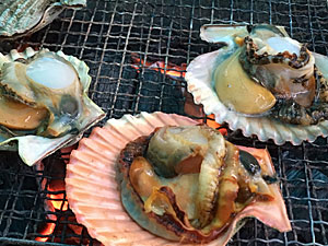夜は大正市場で買ったヒオウギ貝(高知の地元では長太郎貝と言ってました)。ホタテにそっくりだけど、味は結構違うのです。少しサザエっぽい苦みがあり、パワフルな感じ。
