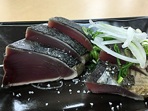 今回もカツオ相当食べたが、最終日にもう一度須崎道の駅。ここでたたきを作ってもらって朝飯とあとは家まで持って帰って娘のお土産。できたてを真空パックしてもらえるので、臭くならないのです。
