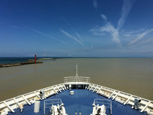 新潟港FTから出航 雨の影響で川の色が茶色 |