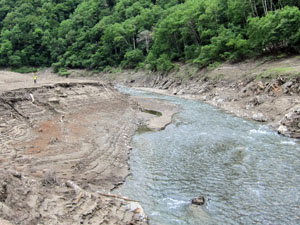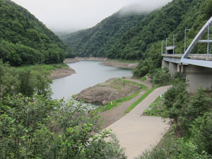 六花の森のレストハウスで昼食後、中札内園地キャンプ場へ。これで無料だ。とにかく広いのと、すぐ横に札内川が流れてるという環境が素晴らしい。夕刻は、キャンプ場から上流に向かい、札内川ダムのインレットに入釣。夕まづめまで頑張ったが、生体反応なし。ただ湖岸には40cm超のニジマスの死体が浮いてたので、いることは確かのようだ。霧雨が降ったり止んだりで、夜はかなり冷え込んで、寒い。