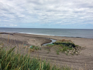 途中の以久科原生花園(いくしな)に寄った。3月に来た時には一面に流氷があった場所だ。夏はこんな感じなんですね。何もない。