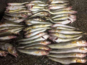 サビキにイソメで針数だけかかる |