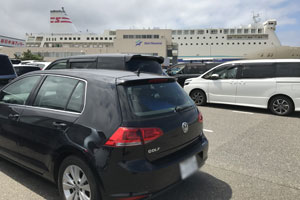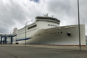 8/10 5:09 藤沢を出発。コンビニで朝食を調達してから、高速へ。圏央道と関越で10分ほどの渋滞あるも順調。10:00ちょうどに新潟FTに到着。同伴者の乗船は10:40すぎから、車は11:15から開始。船は昨年(2017年)新造船のらべんだあ。出航は12:00ちょうど。